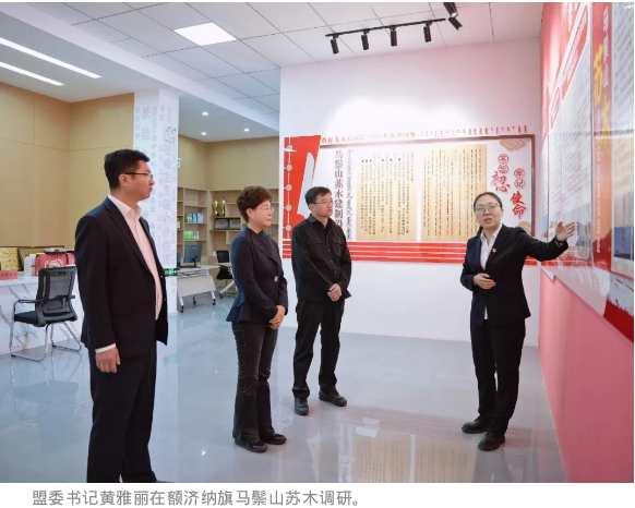 在額濟納旗馬鬃山蘇木,黃雅麗聽取基層黨建、基礎設施、特色產業發展等情況介紹,得知蘇木駐地和周邊牧戶飲用水問題得到有效解決、農牧民拿到第一筆嘎查集體經濟分紅資金,黃雅麗十分欣慰。她說,蘇木鎮黨委政府是聯系服務群眾的“最后一公里”,必須始終堅持問題導向,全心全意為民辦實事、解難題,這樣才能贏得群眾的信任和支持。要教育引導黨員干部珍視在艱苦環境中干事創業的經歷,錘煉過硬作風,提升能力本領,努力推動特色產業提質、嘎查集體經濟擴增,千方百計增加群眾收入,解決好老百姓“急難愁盼”問題,讓守土戍邊農牧民過上更好的生活。